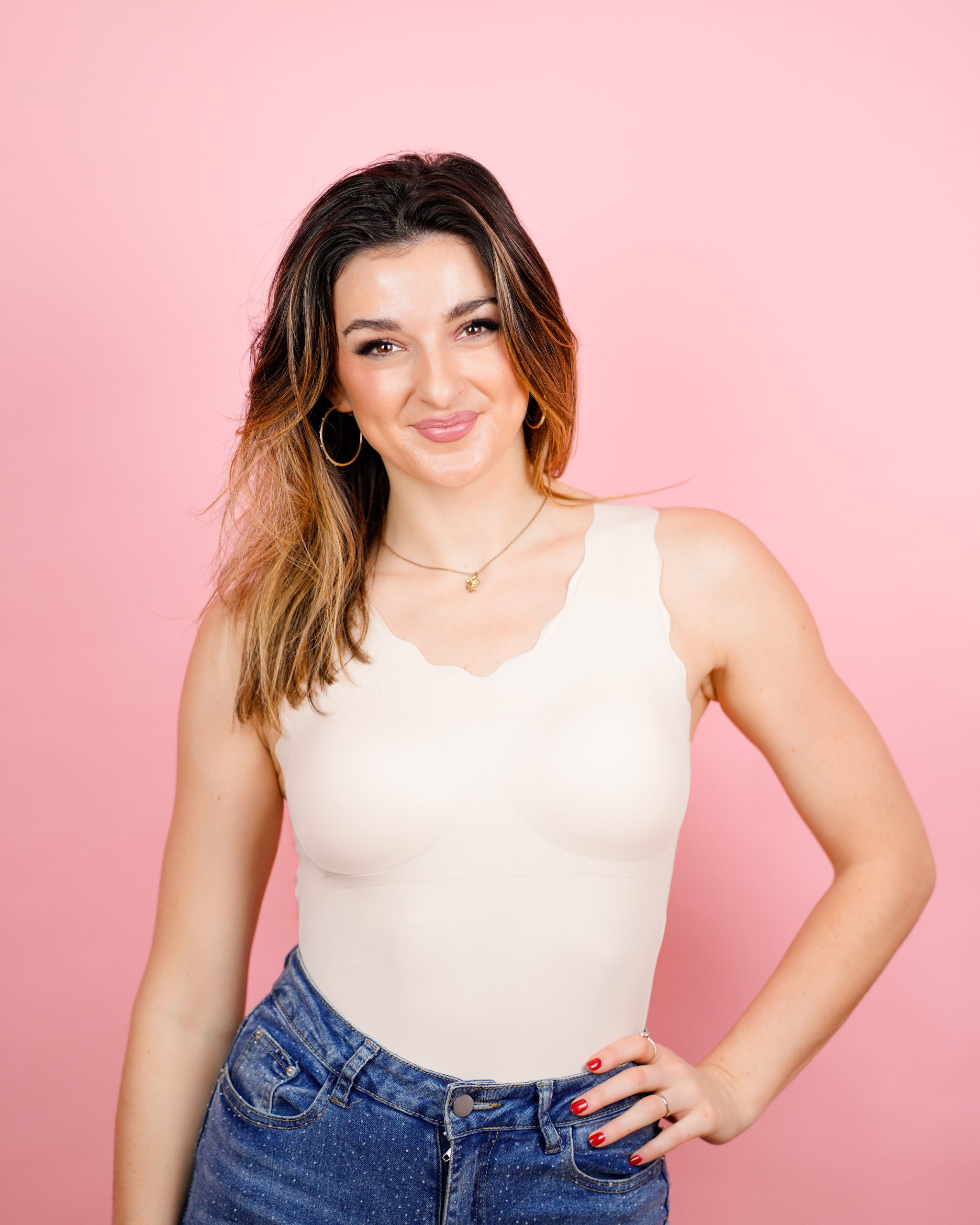 76% poliamid in 24% elastan POLIAMID: Poliamid je izredno priljubljen material v svetu spodnjega perila in športnih oblačil. Je lahek, gladek in zelo prijeten na dotik. Ena njegovih glavnih prednosti je odlična trpežnost – ne mucka se hitro, dobro prenaša pranje in dolgo ohranja obliko. Poleg tega je poliamid zračen in hitro sušeč, zato je primeren tudi za aktivno vsakodnevno uporabo. ELASTAN: Elastan je tisti del tkanine, ki poskrbi za raztegljivost. Njegova posebnost je, da se lahko močno raztegne in nato povrne v prvotno obliko. To pomeni, da oblačilo vedno ostane udobno, se lepo prilega telesu in se ne raztegne trajno. Elastan v brezšivnem topu INFINITY poskrbi, da se tkanina nežno prilagodi tvojemu telesu in gibanju – brez tiščanja in neprijetnih robov.