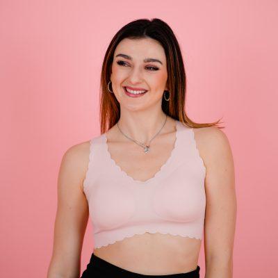 Široke naramnice, model ki se popolnoma prilagodi tvoji postavi in material, ki daje občutek druge kože.
